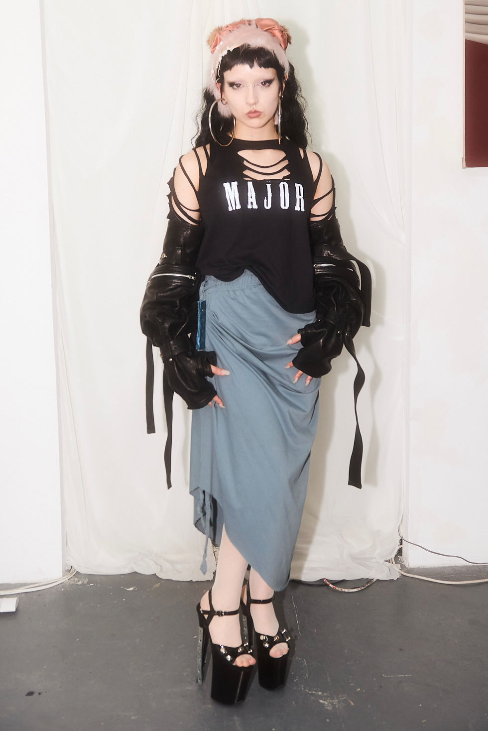 THE SS25 MAXI SHELL PARKA IS A SCULPTURAL RUNWAY PIECE FEATURING TWO LARGE, COCOON-SHAPED JUMBO SLEEVES WITH THREE CONTINUOUS HAND-SADDLE-STITCHED SEAMS. ITS VOLUMINOUS BACK STRUCTURE MAINTAINS ITS SHAPE DUE TO THE THICKNESS OF THE LEATHER. THE DESIGN INCLUDES A CENTER FRONT HEAVY METAL DOUBLE-ENDED ZIP, WITH A BOMBER JACKET-STYLE NECK RIB, JUMBO CUFFS, AND DEEP HEM RIB WHICH ARE ALL CRAFTED FROM 600GSM HEAVYWEIGHT COTTON. THIS GARMENT IS FULLY LINED WITH 100% COTTON FABRIC.