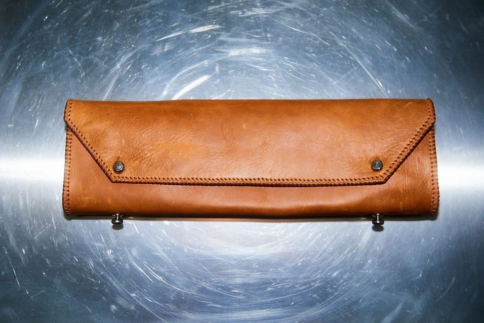 THIS PIECE TAKES APPROXIMATELY A WEEK TO MAKE, AS EACH SEAM IS FIRST PRE-GLUED WITH LEATHER GLUE AND THEN SEAM-ROLLED TO AVOID ANY PUCKERING OF THE LEATHER. EACH HOLE IS INDIVIDUALLY PUNCHED AND SADDLE STITCHED USING 2MM THICK WAXED COTTON THREAD. THE ENTIRE PIECE, INCLUDING THE ZIPPER, NECK, CUFF, AND HEM RIB, IS FULLY HAND-STITCHED.